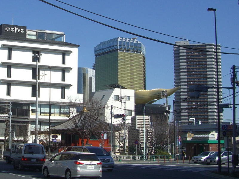 ホールの隣にある、これまた目立つ黄金のビルがアサヒビール本社で工場跡地を利用して建てられた。