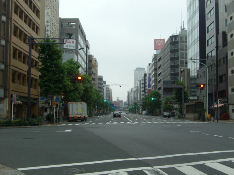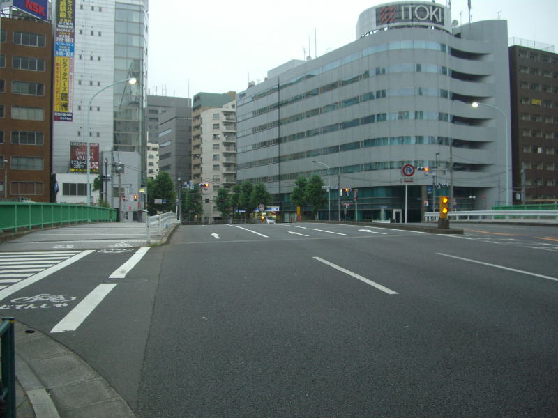 日本橋川を渡った後、平成通りと合流する蛎殻町交差点で進路を北東方面に変える。
