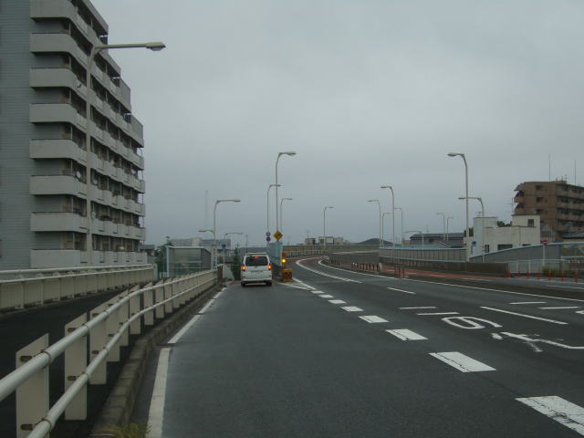 川を渡った先はそのままカーブ状の立体交差橋、さらに連続して都県境となっている今井橋へと繋がっていく。