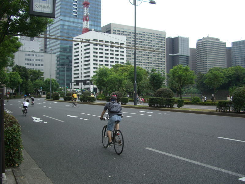 多くのサイクリストが皇居前サイクルを楽しむ。
