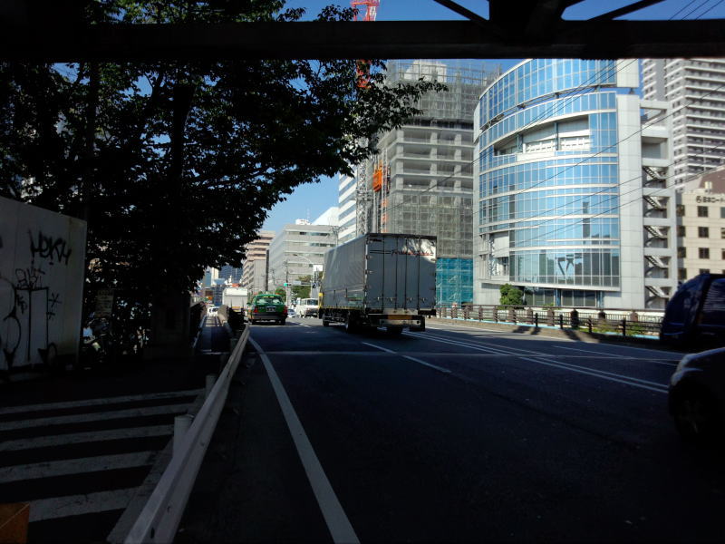 左折はソニー本社、NTTツインビル横を通って品川駅前に向かう。