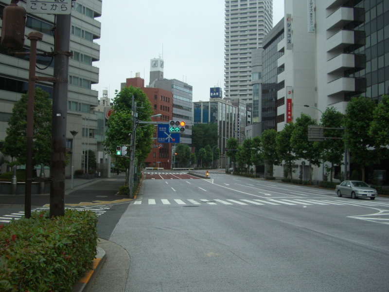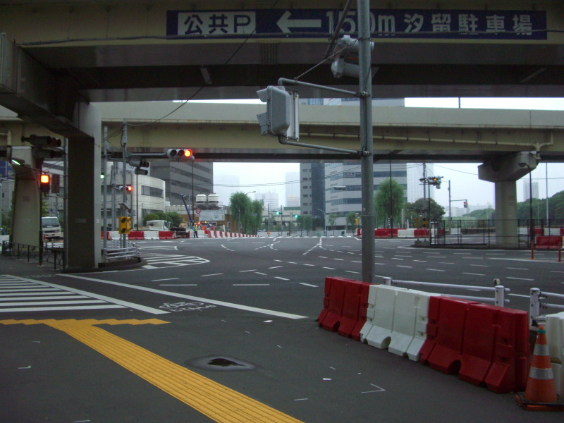 休日早朝の汐留交差点。