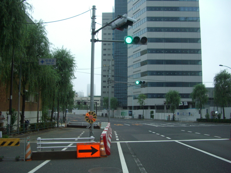 晴海通りと交差する築地交差点。