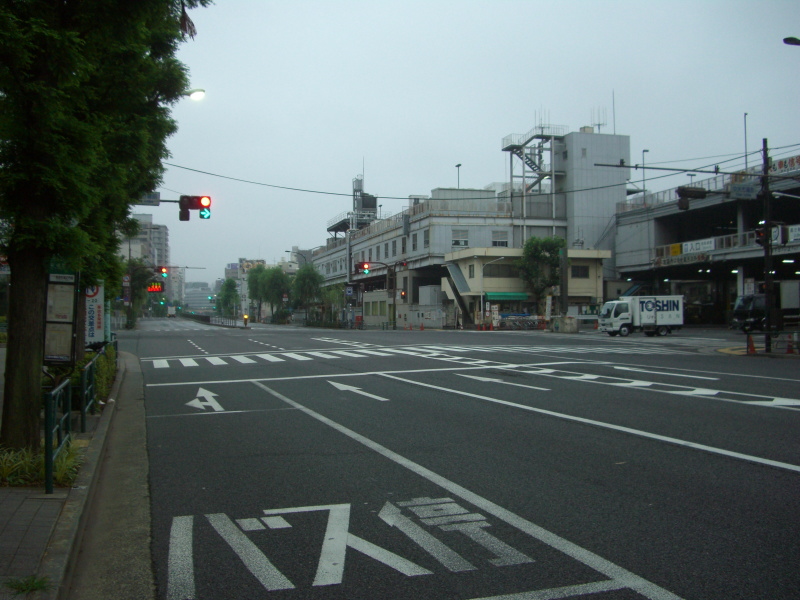 日本最大級の生鮮卸し市場、築地市場に近づいてくる。
