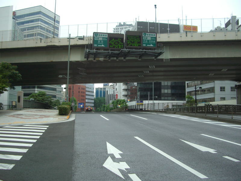 日本橋川を渡った後、平成通りと合流する蛎殻町交差点で進路を北東方面に変える。