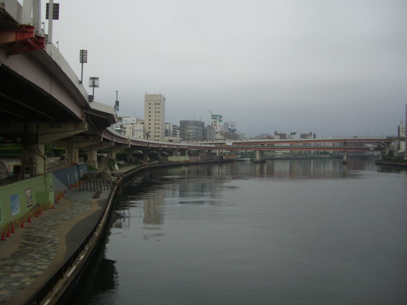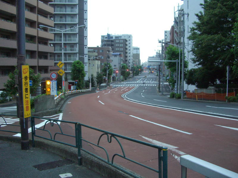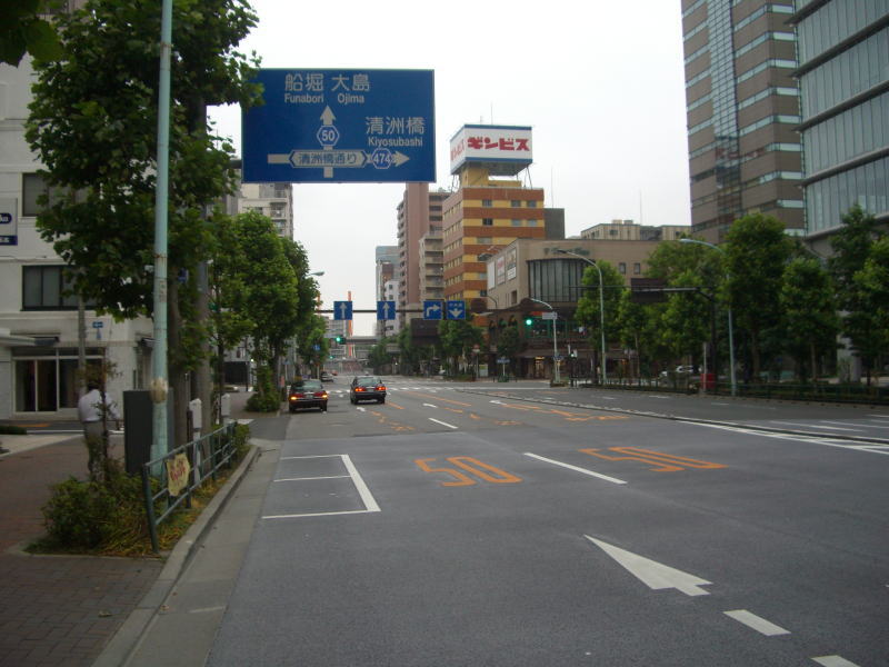 茅場橋北詰のカーブを曲がると新大橋までの一直線のストレート。