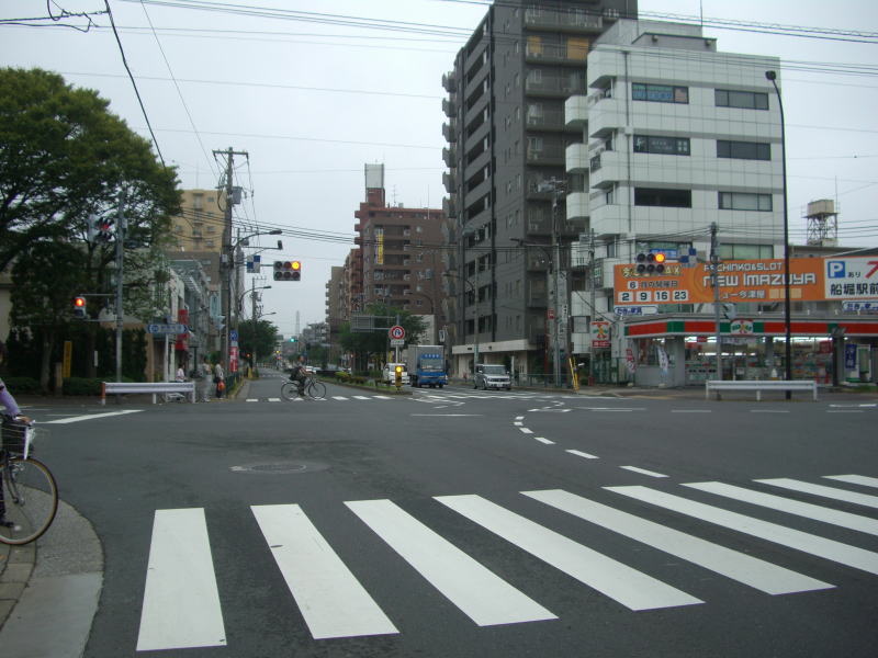 ずっと雑居ビルが両脇に並ぶ光景が続いてきた新大橋通りも、荒川を渡ると大分落ち着いた雰囲気なってくる。