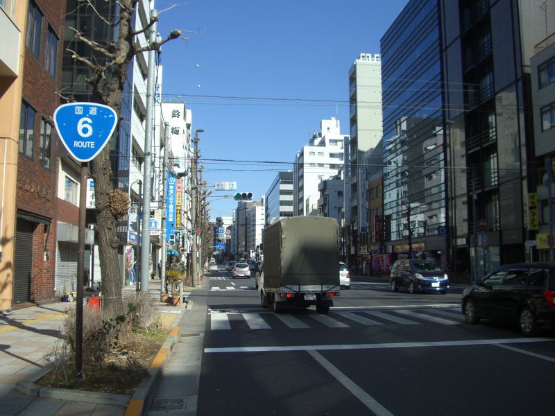 交差点名の通り、R6を横切る浅草通りが隅田川を駒形橋で渡る。