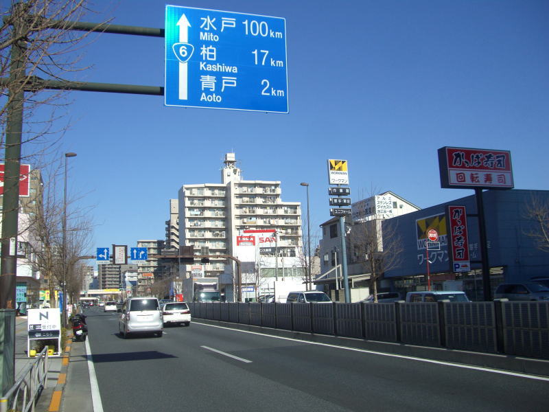 葛飾の住宅地をまっすぐ進むR6。