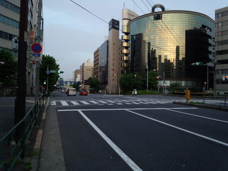 地図JRの高架群を潜って100m程でR4昭和通りとの交差の岩本町交差点。