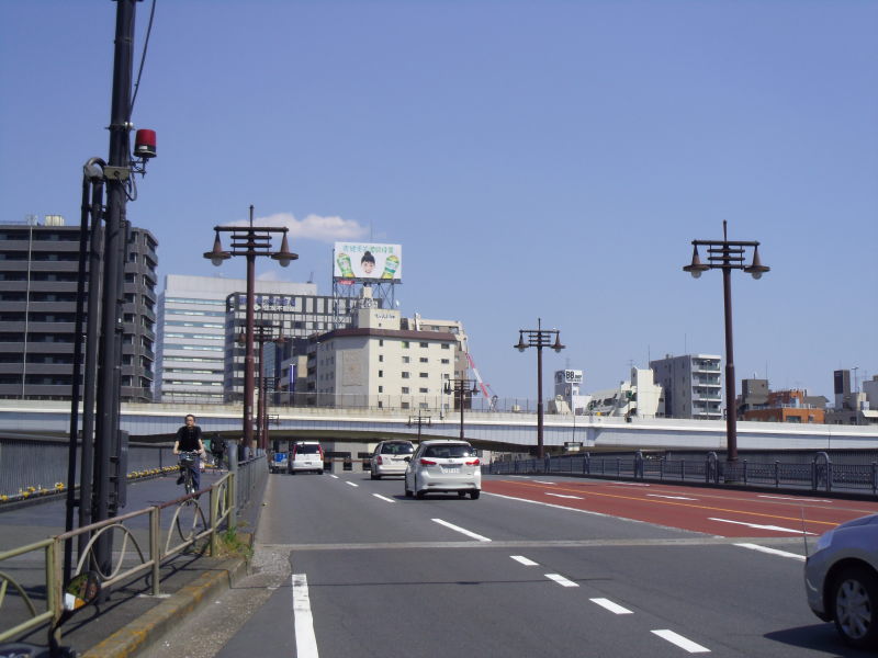 緩やかな上り勾配で両国橋へと差し掛かる。