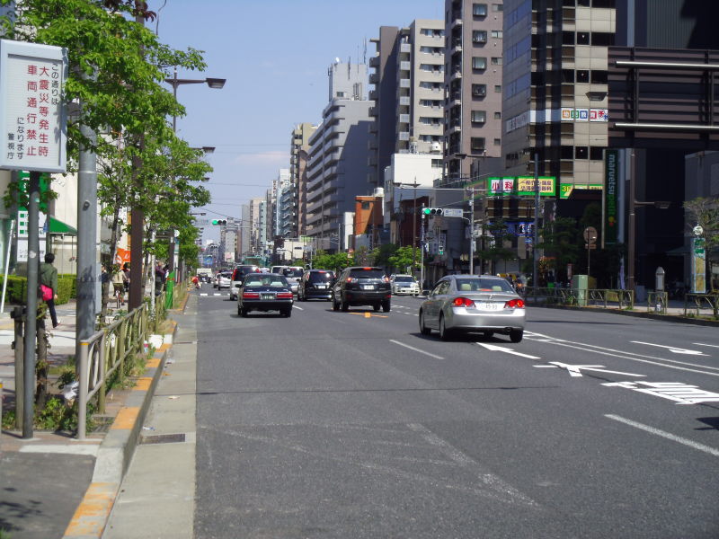 さて両国駅前地域を抜けてしばらく進むと、清澄通りと交差する緑一丁目交差点。