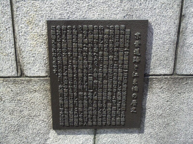 この解説では、当初から江東橋が千葉街道の橋として架けられたように書いているが、同街道はこの場所より南側の堅川沿いを通っていた。