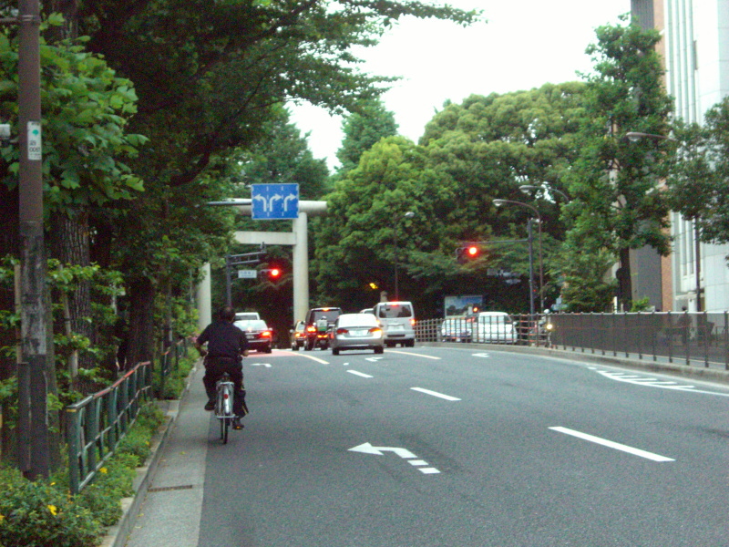 ちなみに休日はここから祝田橋交差点まで歩行者道・・・と言うより自転車道状態になる。