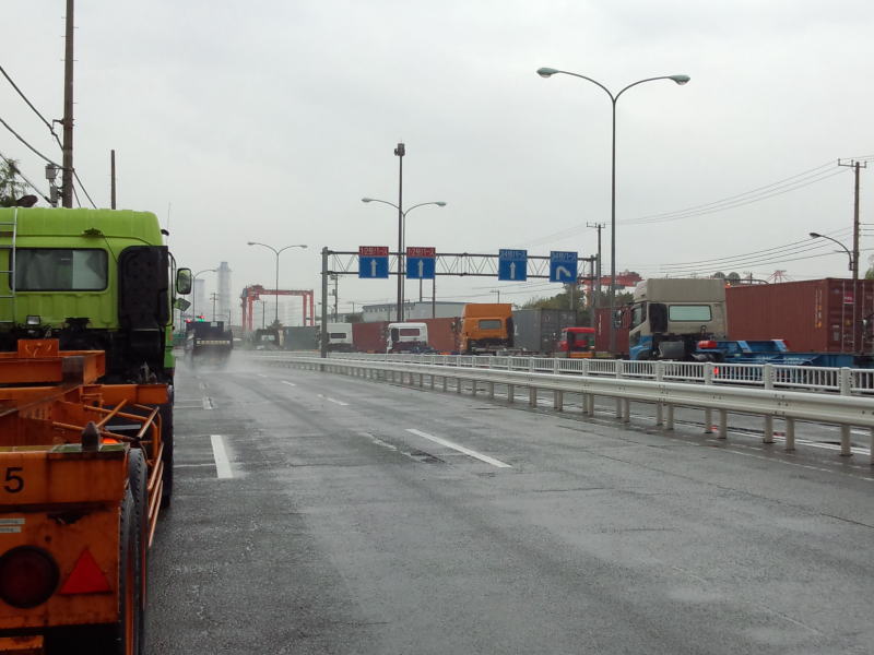 各バースに向かっていく貨物車専用レーンは相変わらずのギュウギュウ詰めだが、通常レーンはスカスカ。