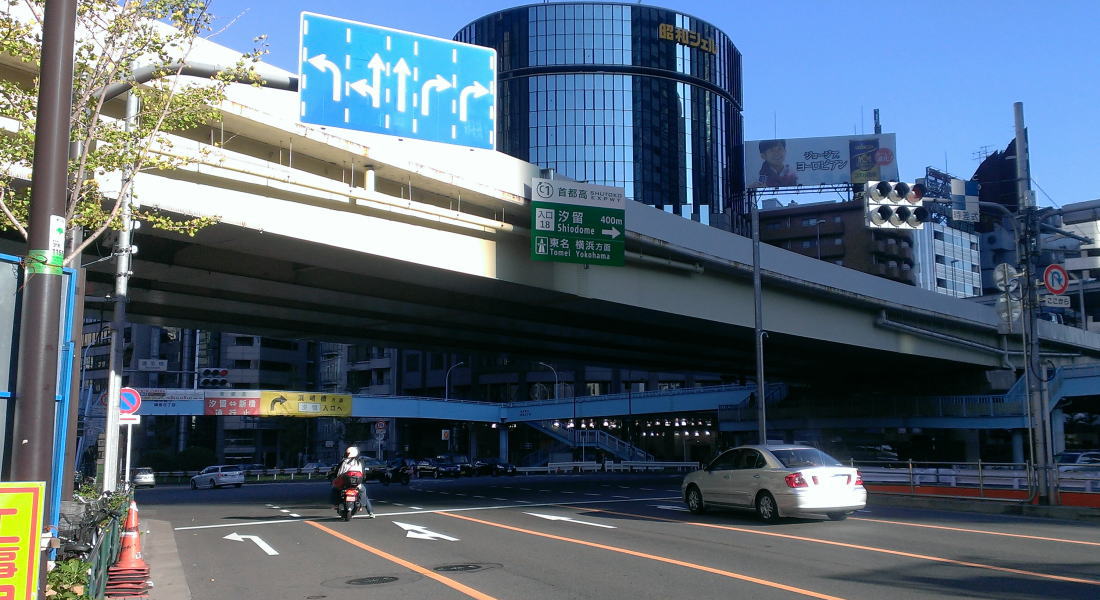 この高架道路、首都高と思いきや実は『東京高速道路』という別の団体が管理する道路(通称KK線)。