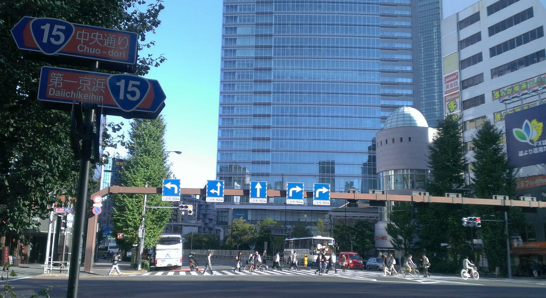 R15が横切る新橋交差点。
