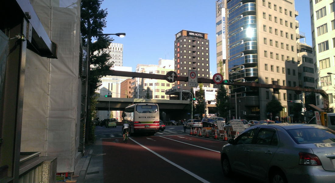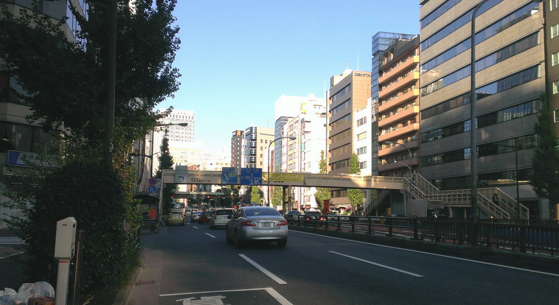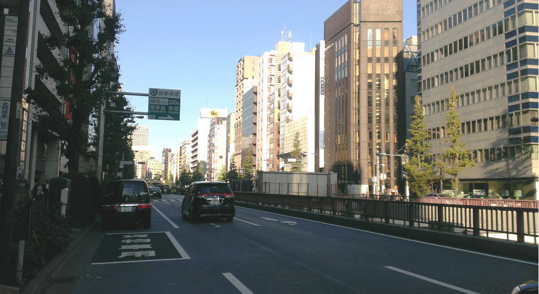 逆方向は新橋駅前を通り赤坂方面へと向かう外堀通り。